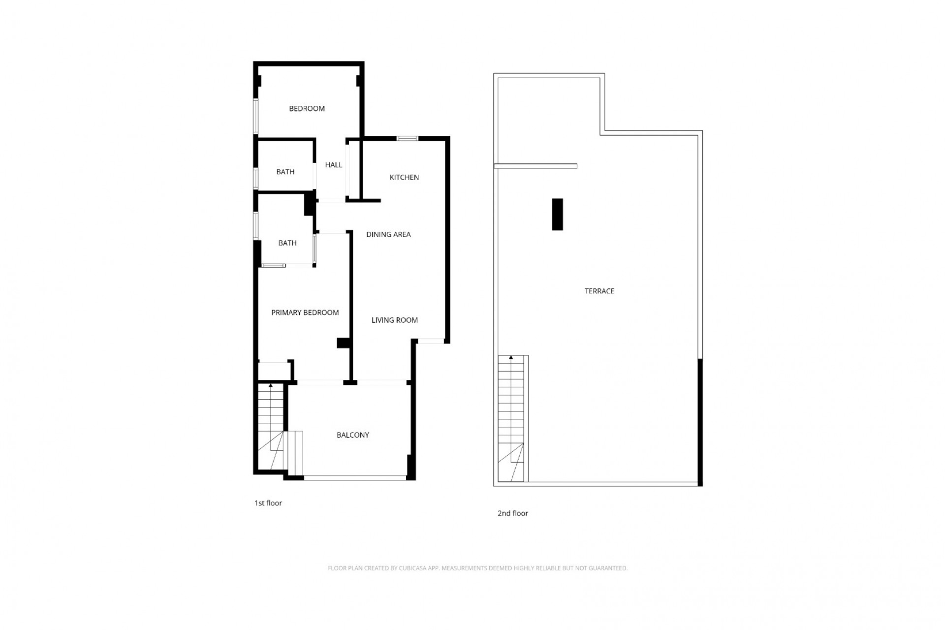 From the front door you enter the spacious living room, which is connected to the dining area and at the back is a well-equipped kitchen. The master bedroom has its own en-suite bathroom, while the second bathroom serves the second bedroom. Both the living room and the master bedroom have patio doors to a south-facing balcony, from which external stairs lead to the roof terrace. The roof terrace offers expansive views of the mountains and the surrounding area. You can open the roof terrace awning and create a sheltered space to enjoy the Mediterranean climate.