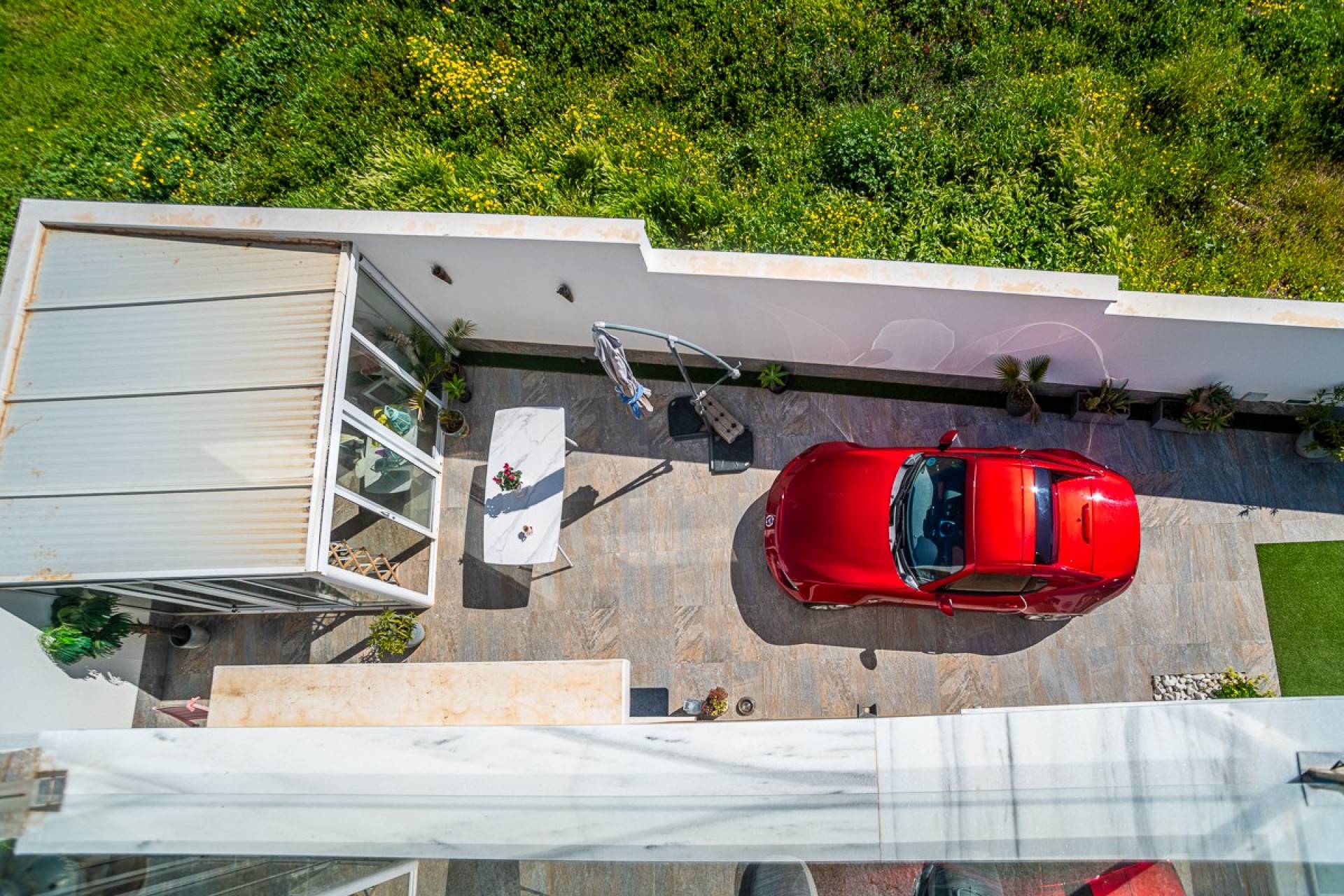 Outside, too, this villa is fully equipped to enjoy the Mediterranean climate. The beautiful garden features a cozy chill-out zone and a private swimming pool with a Jacuzzi , where you can relax in complete privacy. Additionally, an extra covered area has been created that can serve perfectly as a guest house, hobby room, or extra lounge spot . Furthermore, there is a practical storage room behind the kitchen, ideal for extra storage.