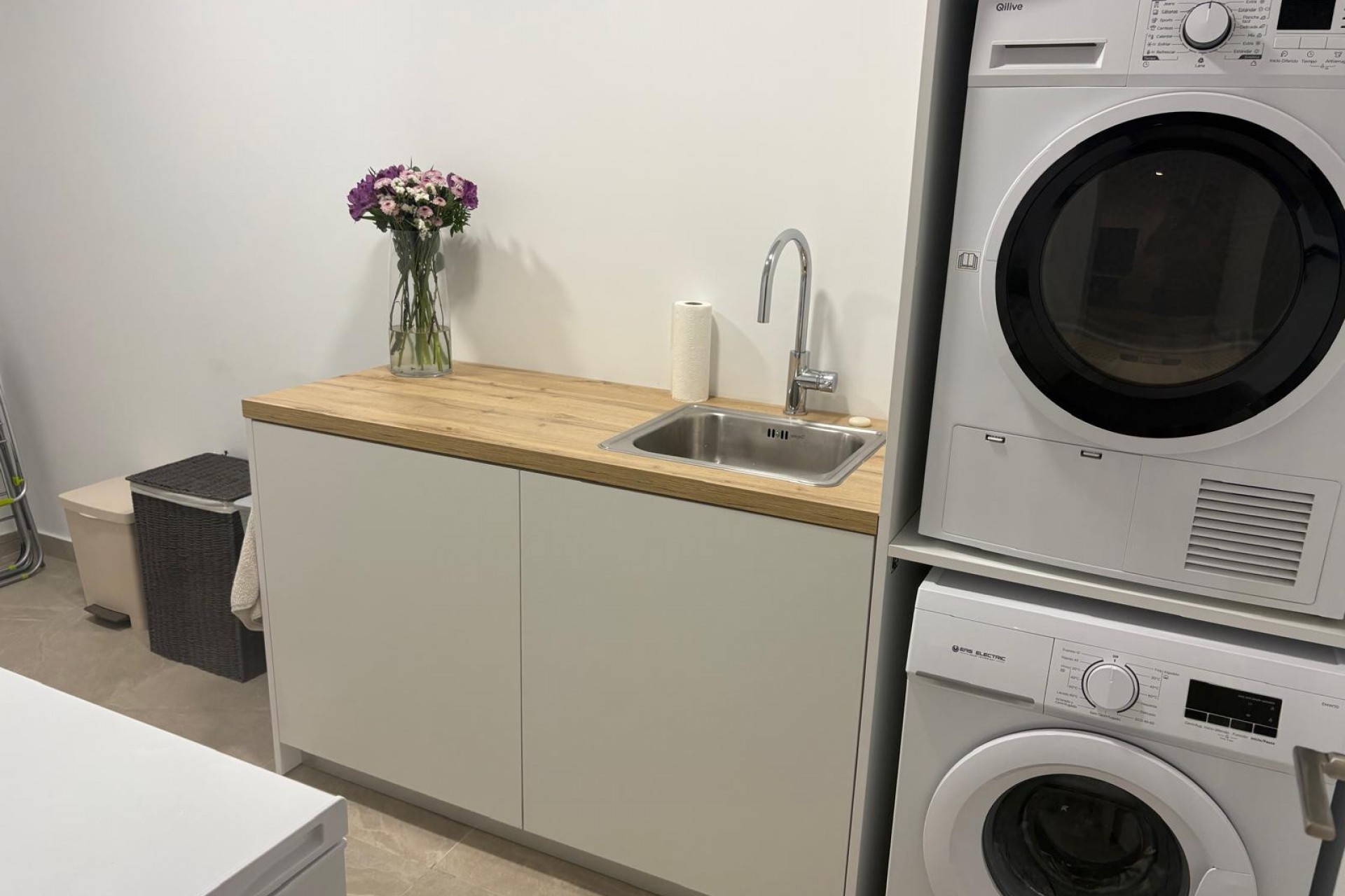 La vivienda principal cuenta con 3 dormitorios dobles y 2 baños, además de un amplio sótano al que se accede mediante escaleras desde el salón. Este espacio podría utilizarse como alojamiento para invitados y cuenta con cocina americana y baño.