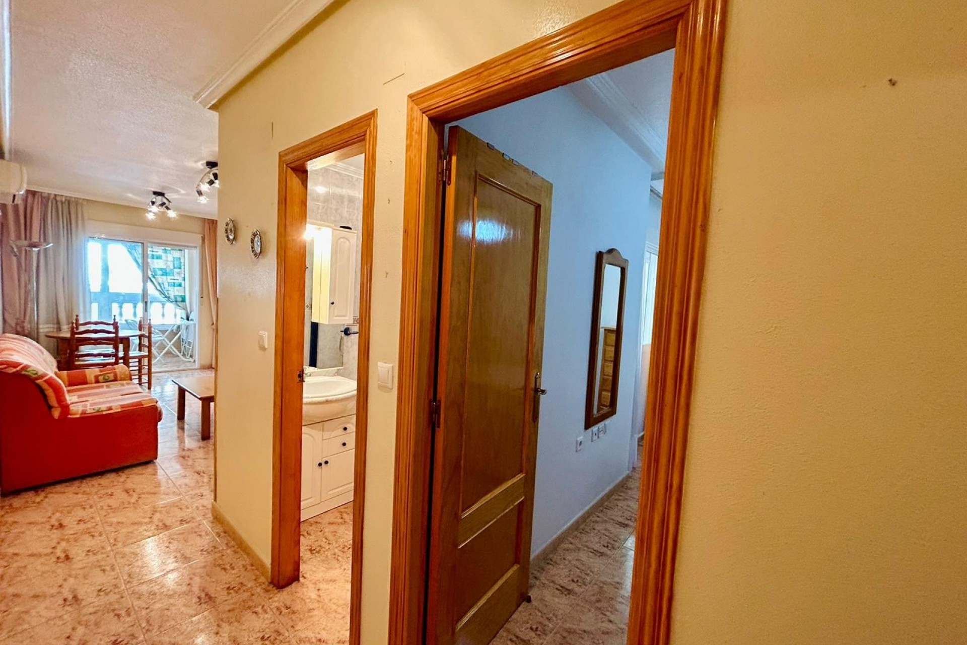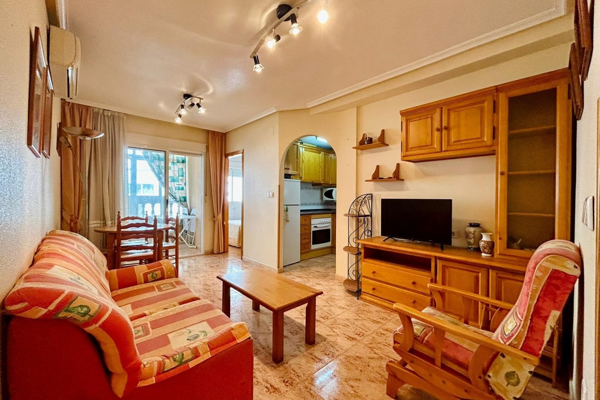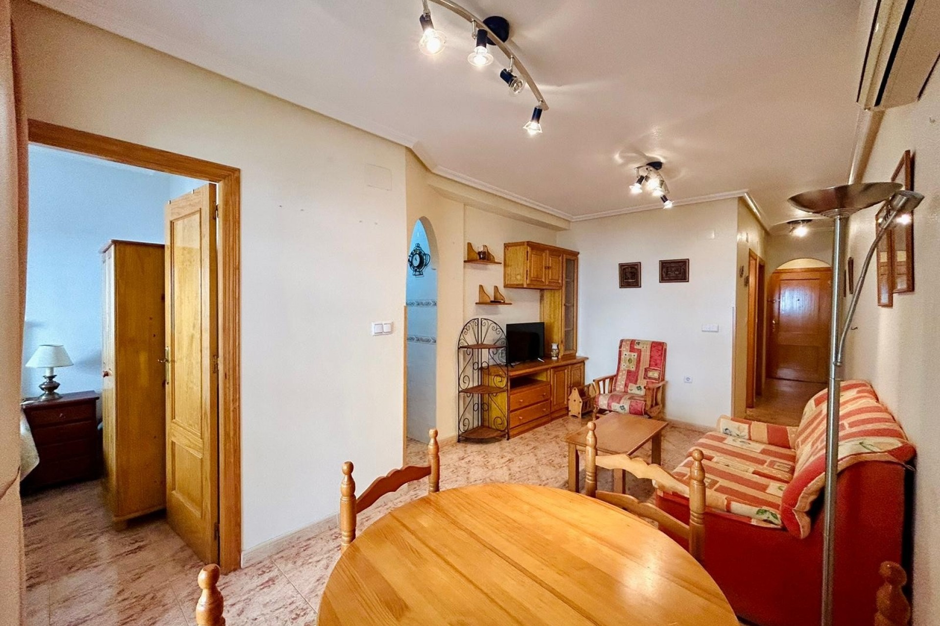 Asunnossa on kaksi tilavaa ja mukavaa makuuhuonetta, jotka sopivat täydellisesti perheelle tai vieraiden viihdyttämiseen. Se myydään täysin kalustettuna, mikä on merkittävä etu: lisäinvestointeja ei tarvita, voit vain muuttaa sisään. Olohuone tarjoaa viihtyisän ja toimivan tunnelman, joka on ihanteellinen rentoutumiseen rantapäivän jälkeen. Pohjaratkaisu on käytännöllinen ja suunniteltu hyödyntämään jokainen neliömetri parhaalla mahdollisella tavalla, luoden mukavan ja valoisan tilan, josta on helppo nauttia heti saapuessasi.