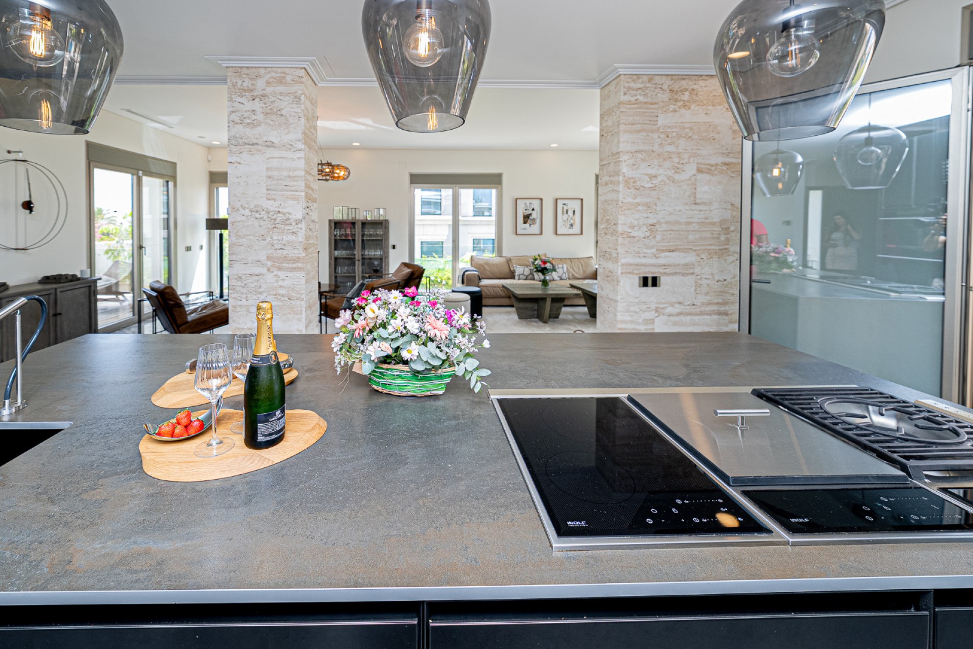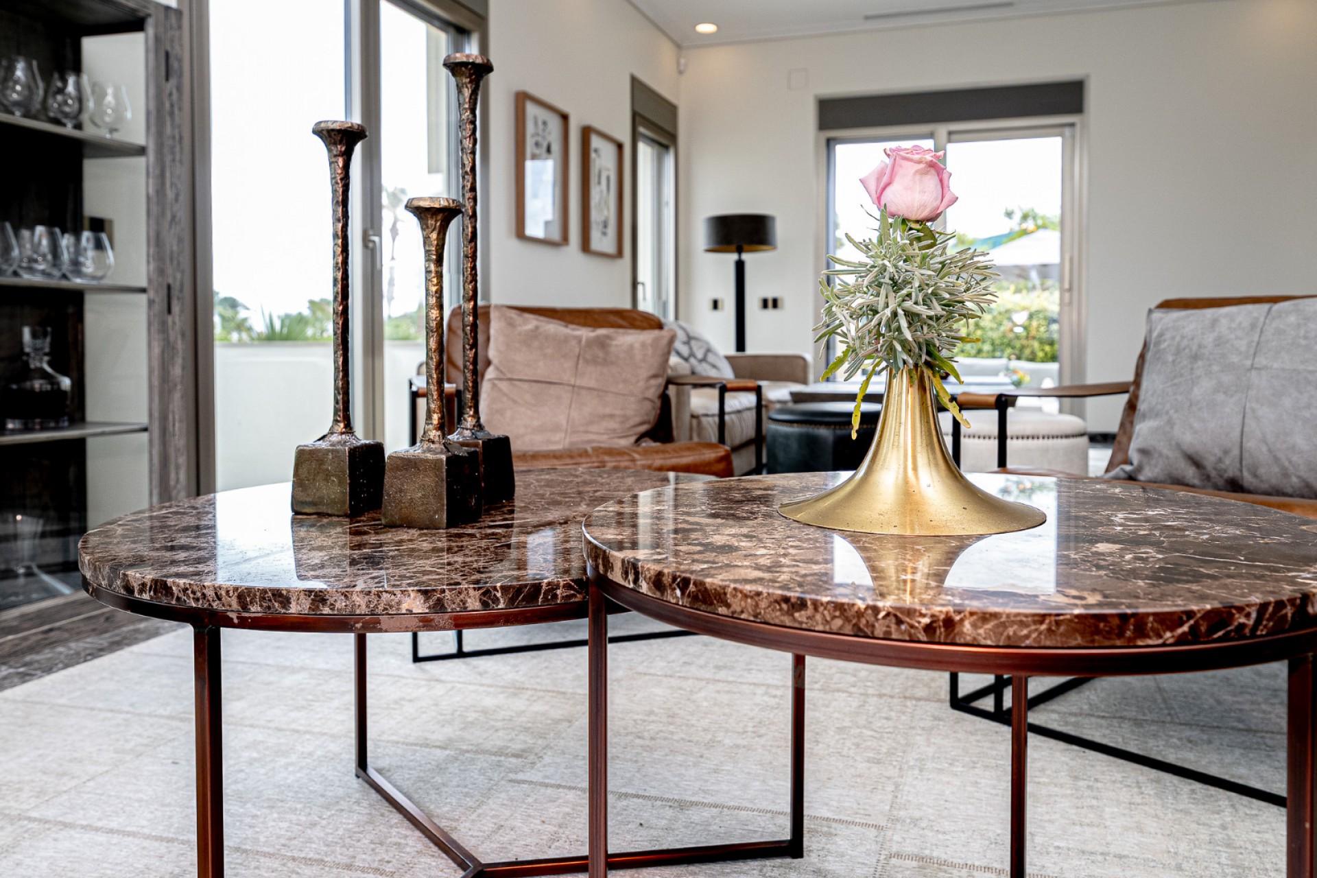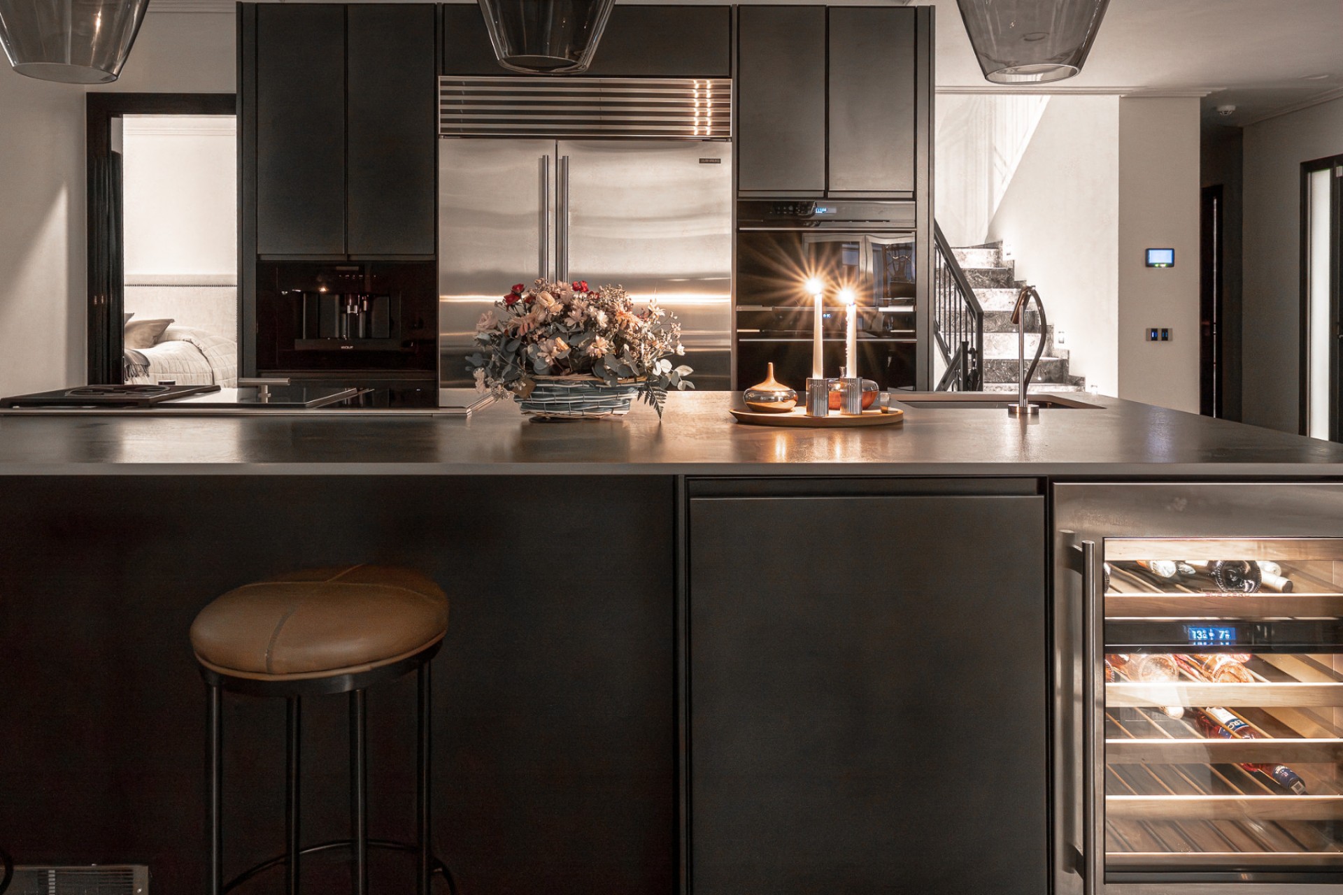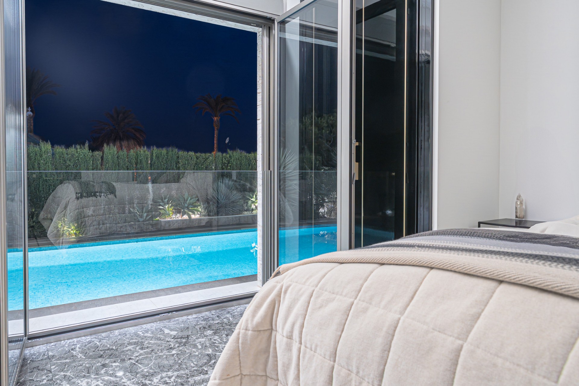 Villan är fullt möblerad med noggrant utvalda exklusiva inredningsdetaljer och har designbelysning i hela huset. Den har också ett toppmodernt multizonsljudsystem från Mezzanine Audio, med avancerade högtalare integrerade i både interiören och exteriören. Trädgården har ett utomhusljudsystem från Sonance, medan varje terrass har inbyggda högtalare. Inuti är vardagsrummet, köket, sovrummet, gymmet och ett gästrum utrustade med "osynliga" takhögtalare – sömlöst integrerade i arkitekturen. Alla zoner styrs centralt via ett intelligent Sonos-styrsystem, vilket möjliggör intuitiv användning genom appbaserad domotikteknik.