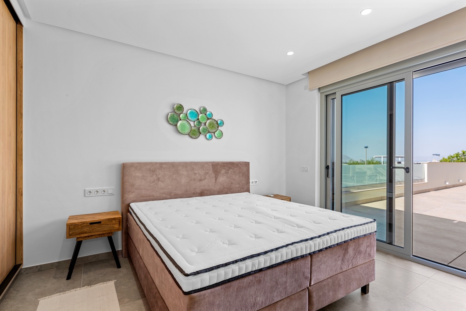Denna exceptionella specialbyggda villa förkroppsligar modern elegans och komfort i en lugn och inbjudande miljö, bara några minuter från alla viktiga bekvämligheter, vilket gör den till det perfekta familjehemmet eller semesterboendet. Vid inträdet möts du av en öppen och luftig planlösning utformad för sömlös inomhus- och utomhusliv. Bottenvåningen har ett rymligt sovrum med inbyggda garderober och ett lyxigt badrum. En av villans mest unika funktioner är dess direkta tillgång till poolen: skjut bara upp de stora glasdörrarna och du kan dyka in i din privata oas. På övervåningen hittar du ytterligare tre rymliga sovrum, varav två har eget badrum, vilket garanterar maximal avskildhet och komfort. Kronjuvelen på översta våningen är det stora solariet, där du kan njuta av fantastisk panoramautsikt. Det är den perfekta platsen för att sola, underhålla gäster eller njuta av fridfulla solnedgångar. Villan har också en stor källare med gott om plats för garage och ytterligare förvaring. Den rymliga källaren erbjuder oändliga möjligheter, med potential att omvandlas till ett extra bostadsutrymme, nöjesområde eller gästsvit, vilket ger komfort och mångsidighet till din livsstil. Ett toppmodernt vattenreningssystem ger rent, renat vatten i hela huset, vilket framhäver noggrannheten i varje hörn.