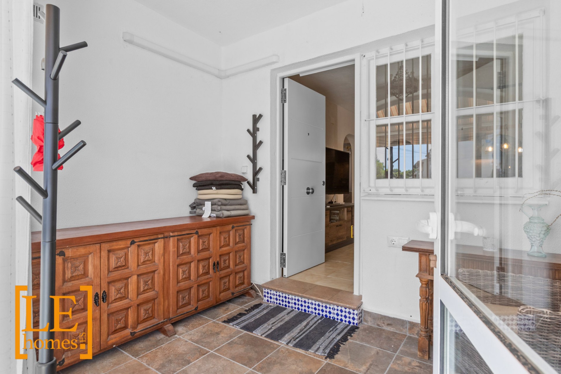 Bostaden erbjuder två sovrum, ett badrum, ett funktionellt kök och ett mysigt vardagsrum med utgång till den inglasade terrassen. Terrassen fungerar som ett extra trevligt utrymme året runt och öppnar sig vidare ut till den egna inhägnade trädgården där du kan koppla av och njuta av utomhuslivet. En luftvärmepump garanterar behaglig temperatur året runt.